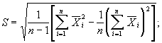 среднее квадратическое отклонение выборочных средних по плите (для показателей, кроме плотности) S по формуле