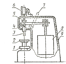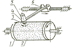 1 - полый цилиндр; 2 - шлифовальная шкурка; 3 - образец; 4 - держатель; 5 - патрон; 6 - каретка