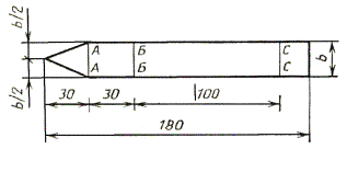 11.3.2. Измеряют толщину сварного шва h и ширину образца b на расчетной длине образца не менее чем в трех местах.