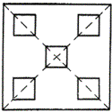 Пять квадратов располагают следующим образом: один - в центре плиты и четыре - в углах плиты на расстоянии 10 мм по диагонали от вершины угла (черт. 4).
