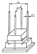для колодок типа Б - из плоского основания с закрепленными перпендикулярно к нему четырьмя металлическими стержнями, которые продевают в сквозные отверстия колодок (черт. 4).
