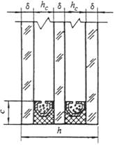 рамкой; hc ¾ расстояние между стеклами; с - ширина герметизирующего