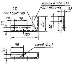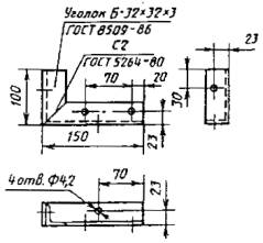 1 - настил; 2 - упор; 3 - уголок; 4 - уголок; 5 - опора; 6 - полоса