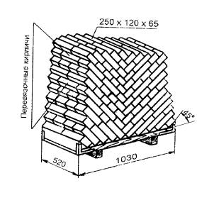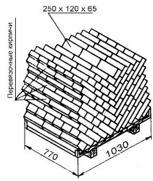 Примечание. По соглашению предприятия - изготовителя кирпича со строительными и транспортными организациями допускается изготовлять и применять для доставки кирпича поддоны размерами 750´1300 мм при наличии на строительстве грузозахватных приспособлений, обеспечивающих безопасность при подъеме пакетов кирпича к рабочему месту каменщика. |