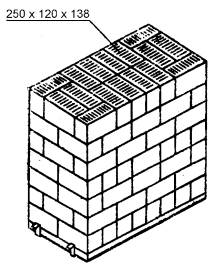 6.2. Укладка кирпича и камня на поддоны должна производиться с соответствующей перевязкой рядов, обеспечивающей сохранность и устойчивость пакетов при транспортировании. Схемы различных способов укладки пакетов приведены в рекомендуемом приложении.