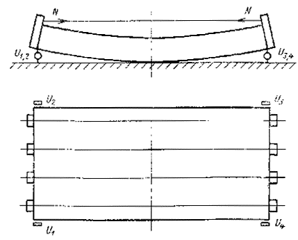 3.1. Метод основан на нивелировании точек рабочей поверхности поддона до и после натяжения арматуры и позволяет определить прогиб (выгиб) формы и сближение упоров по оси напряженной арматуры.