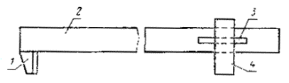 1 - неподвижный упор; 2 - балка (брус, труба); 3 - линейка с миллиметровыми делениями; 4 - подвижной упор