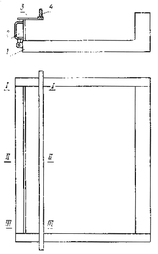 1 - поддон; 2 - борт; 3 - линейка; 4 - рейка