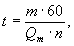 5.2 При отборе проб с ленты конвейера или от пневмопотока период отбора проб (t) в минутах вычисляют по формуле