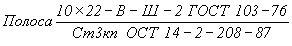 Полоса стальная горячекатаная толщиной 10 мм и шириной 22 мм, обычной точности прокатки (В), для холодной штамповки гаек (Ш), с серповидностью по классу 2 по ГОСТ 103-76 из стали марки Ст3кп: