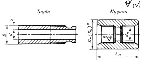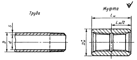 5.1.4. Все знаки маркировки должны быть нанесены вдоль образующей трубы и муфты, Допускается наносить знаки маркировки перпендикулярно образующей способом накатки. Допускается наносить знаки маркировки на торцах муфты.