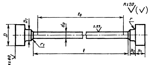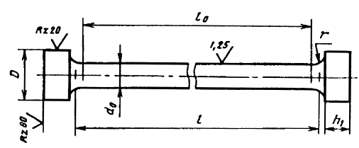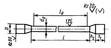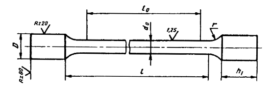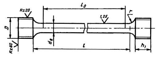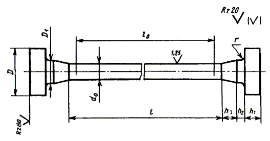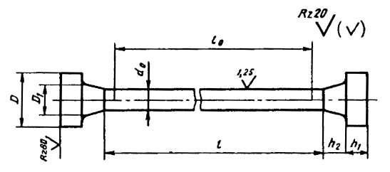 1.5. При отсутствии других указаний в нормативно-технической документации на металлопродукцию значение параметров шероховатости обработанных, поверхностей Ra образцов должно быть не более 1,25 мкм - для поверхности рабочей части цилиндрического образца и Rz не более 20 мкм - для боковых поверхностей в рабочей части плоского образца.