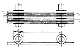 L - расстояние между осями соединительных шпилек, мм.