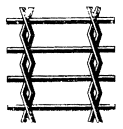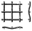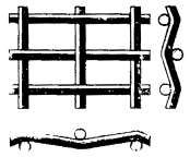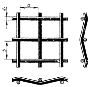 Каждые проволоки из пряди поперечных проволок переплетаются с одиночными продольными проволоками. В местах перекрещивания продольные проволоки отштампованы, а поперечные имеют изгиб рифления |