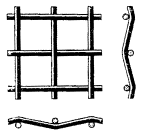 Поперечные и продольные проволоки в местах переплетения от штампованы на глубину, равную диаметру проволоки |