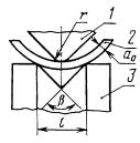 2.1. Испытание проводят путем плавного непрерывного загиба образца вокруг желобчатого ролика или оправки заданного радиуса r до определенного угла. Профиль желобка или оправки должен соответствовать наружному диаметру испытуемого образца. При наличии в нормативно-технической документации на трубы требований по ограничению величины овализации поперечного сечения трубы в процессе испытания допускается проводить испытания с применением внутренней оправки или наполнителя.