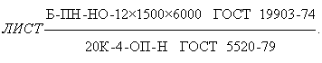 Листовой прокат нормальной точности прокатки (Б), нормальной плоскостности (ПН), с необрезными кромками (НО), размером 12´1500´6000 мм из стали марки 20К, категории 4, очищенной от окалины (ОП), нормализованный (Н):