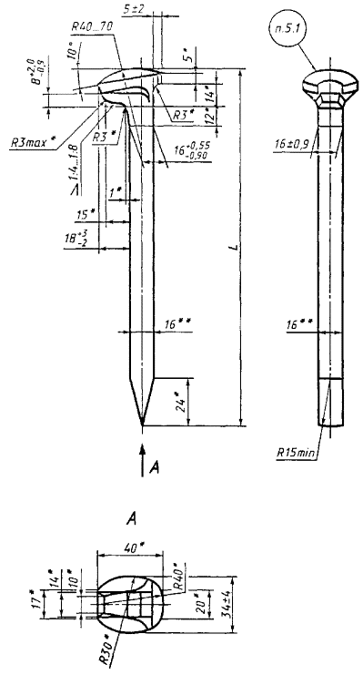 2.3. На поверхности головки костыля не должно быть заусенцев и наплывов металла высотой более 1,5 мм.