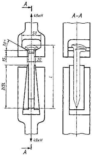 4.3. Испытание на растяжение (п. 2.7) следует проводить в приспособлении, схема которого приведена в приложении 1.