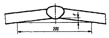 Если нет иных указаний в стандартах или другой технической документации, то стрела прогиба f на длине 200 мм (черт. 1) не должна превышать 10 % от толщины металла, но не более 4 мм.