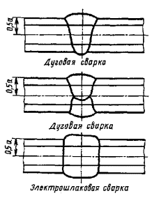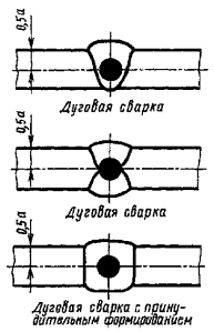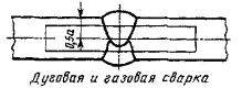 - при ручной дуговой сварке покрытыми электродами и газовой сварке - не менее 20 мм в начале и не менее 30 мм в конце шва;