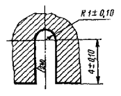 5.6. Кромки образца, попадающие при испытании в растянутую зону, должны быть закруглены механическим способом по радиусу R, не превышающему 0,2а, но не более 3 мм.