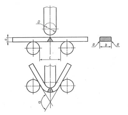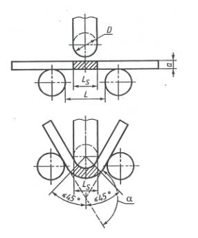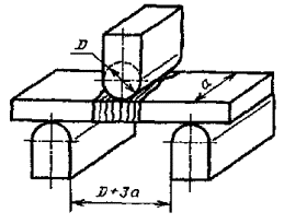 Испытуемый образец подвергается пластической деформации путем изгиба (без перегиба) так, чтобы одна из поверхностей шва находилась в процессе испытания в растянутой зоне.