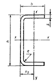 стенки; b - ширина полки; s - толщина швеллера; R - радиус кривизны; W - момент сопротивления; I - момент инерции; i -радиус инерции; Sx - статический момент полусечения, x0 - расстояние от оси у - у до наружной поверхности стенки;