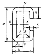Примечания: 1. Площадь поперечного сечения и справочные величины для осей вычислены по номинальным размерам. При вычислении массы 1 м профиля плотность стали принята равной 7,85 г/см3. 2. С-образные профили из углеродистой кипящей и полуспокойной стали изготовляются с радиусами кривизны не более 1,5s, а из углеродистой спокойной и низколегированной - не более 2,5s. 3. С-образные профили 65´32´8´1 и 65´32´8´1,6 мм изготовляются из холоднокатаной заготовки. |