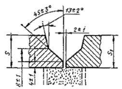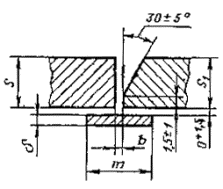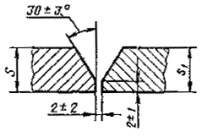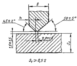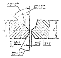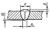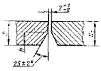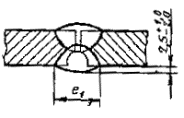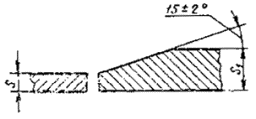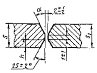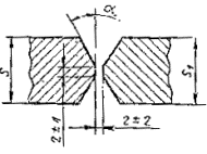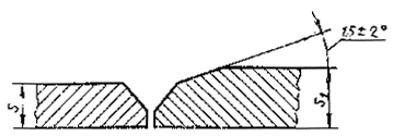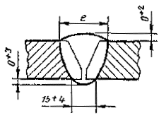 16. При подготовке кромок с применением ручного инструмента, предельные отклонения утла скоса кромок могут быть увеличены до ±5°. При этом соответственно может быть изменена ширина шва, е, е1.