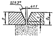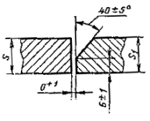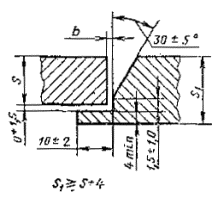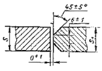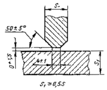 При разнице толщины свариваемых деталей свыше значений, указанных в табл. 53, на детали, имеющей большую толщину s1, должен быть сделан скос с одной или с двух сторон до толщины тонкой детали s, как указано на черт. 2, 3 и 4. При этом конструктивные элементы подготовленных кромок и размеры сварного шва следует выбирать по меньшей толщине.