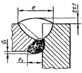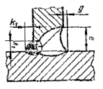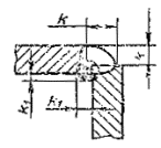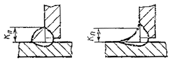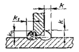 Примечание. Катетом Кп является катет наибольшего прямоугольного треугольника, вписанного во внешнюю часть углового шва. При симметричном шве за катет Кп принимается любой из равных катетов, при несимметричном шве - меньший.