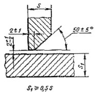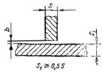 Примечание. Максимальное значение катетов не должно превышать 1,2 толщины более тонкого элемента.