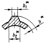 На муфтах допускается увеличение высоты ребра, если оно служит в качестве технологического прилива для подвода металла в форму, на половину его номинальной высоты или местные сколы на длине, не превышающей одной трети номинальной длины, при отсутствии острых кромок.
