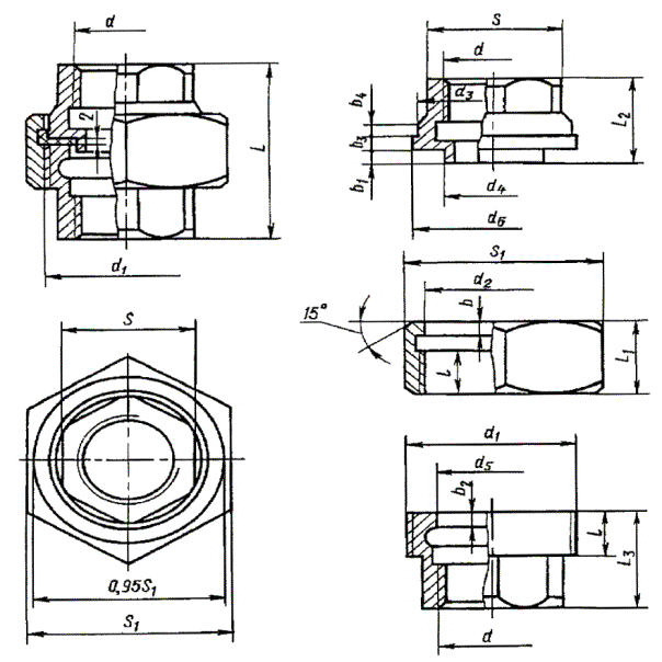 1. Основные размеры гаек должны соответствовать указанным на чертеже и в таблице.