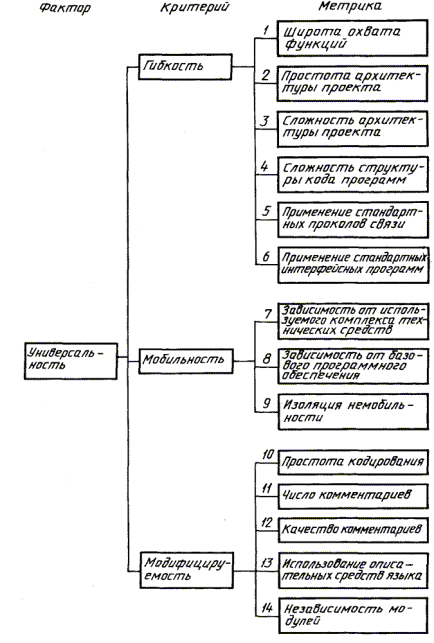 2.1. Номенклатура показателей качества и характеризуемые ими свойства программных средств приведены в табл. 1, где представлены 2 уровня иерархической структуры показателей качества ПС: