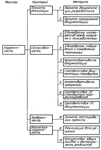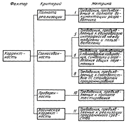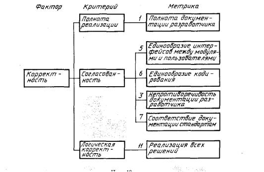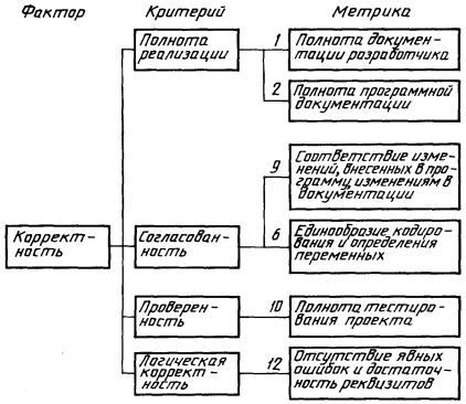 Например, «К1004» означает, что это 4-й оценочный элемент из 10-й метрики фактора «корректность».