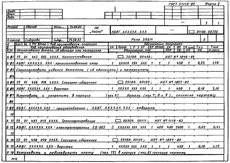 Оформление указанных операций следует выполнять на формах документов, используемых для описания технологических процессов.