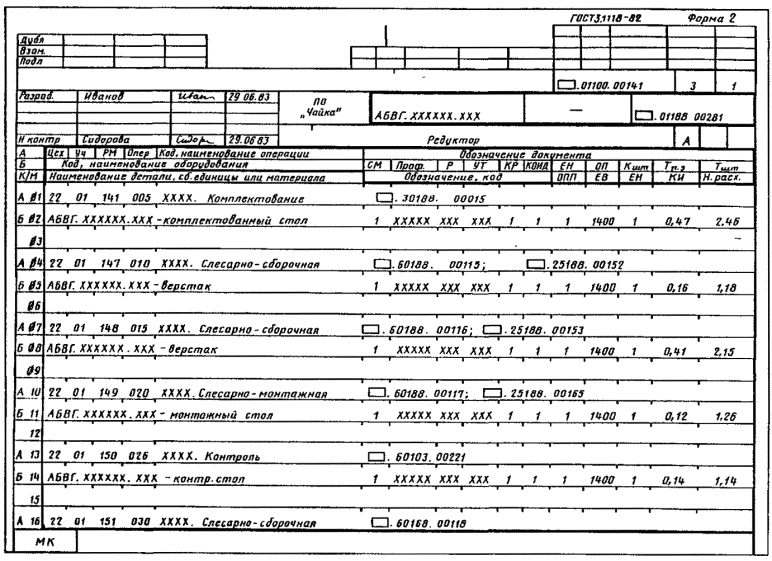МК выполняет роль сводного документа, содержащего данные в технологической последовательности по всем операциям конкретного процесса с указанием номеров цехов, участков, рабочих мест, операций, наименований операций, состава документов, используемых при выполнении операций, оборудования и трудозатрат В соответствующей ОК описывается каждая операция с применением операционного описания |