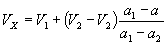 a, a1} a2 - средние арифметические значения показаний микрометра, определяющего степень сжатия при самовоспламенении в ВМТ, соответственно испытуемого топлива, смеси первичных эталонных топлив соответствующей V1 и смеси первичных эталонных топлив, соответствующей V2, %.