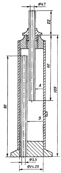 в) острый конец исчезает, язык пламени становится слегка закругленным, черт. 4 (В). Иногда рядом с кончиком языка появляется зубчатое яркое пламя, которое в расчет не принимается;