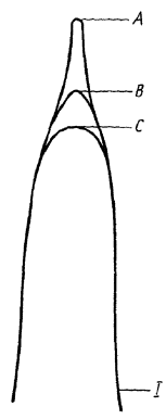 г) язык пламени с сильно закругленным концом, черт. 4 (С).