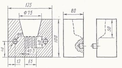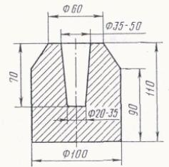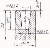 1.15. При заливке жидкого металла в стаканчик-изложницу (черт. 7) допускается для химического анализа использовать пробу в виде стерженьков или дисков. При отборе из ковша трех проб измельчают одинаковые по массе или размеру кусочки трех стерженьков. Для спектрального анализа используют пробу в виде дисков.