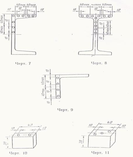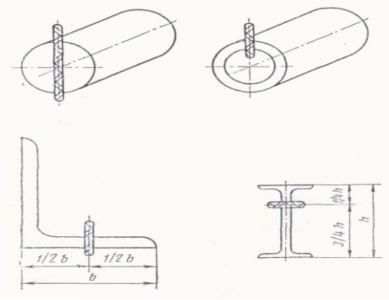 Для проката малых сечений допускается сверление насквозь, при этом в фасонных профилях сверлят в середине ширины полки или  1/4 высоты профиля в соответствии с черт. 4 приложения 2.