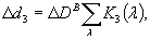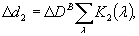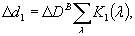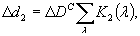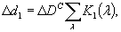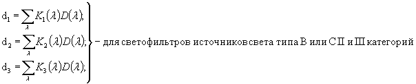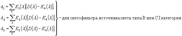 1) исходную плотность D (λ.), использованную при расчете толщин компонентов светофильтра, изменить на постоянное значение ∆DВ или ∆DC в соответствии со следующими формулами: