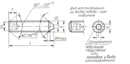 Настоящий стандарт распространяется на установочные винты с коническим концом и шестигранным углублением под ключ классов точности А и В с номинальным диаметром d от 1,6 до 24 мм.