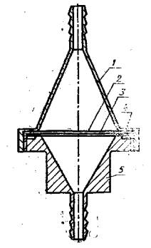 1 - корпус фильтродержателя; 2 - сетка по ГОСТ 3826-82 (от № 04 до № 2); 3 - фильтр АФА-ВП-20; 4 - прижимное кольцо; 5 - крышка фильтродержателя