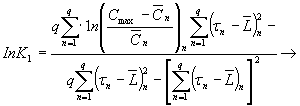 Методом наименьших квадратов вычисляют коэффициенты К1 и K2 по формулам: