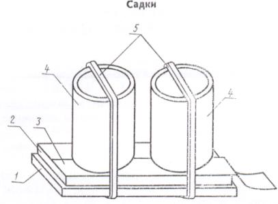 к дощечкам с обеих сторон попеременно прикладывают вплотную образцы на расстоянии 100 мм один от другого и присыпают их землей;
