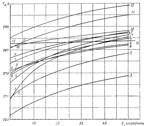 Если вычисленное значение Еср ³ 63 кДж/моль (15 ккал/моль), то допускаемое отклонение Еj между различными значениями показателя в случае монотонного его изменения не должно превышать ±5,3 кДж/моль (±1,25 ккал/моль); в случае немонотонного изменения - ±10,5 кДж/моль (±2,5 ккал/моль).